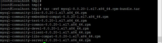 命令:tar -xvf mysql-8.0.20-1.el7.x86_64.rpm-bundle.tar