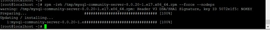 命令:rpm -ivh /tmp/mysql-community-server-8.0.20-1.el7.x86_64.rpm