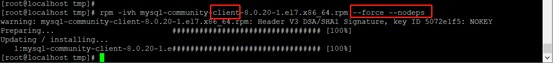 命令:rpm -ivh mysql-community-client-8.0.20-1.el7.x86_64.rpm --force --nodeps
