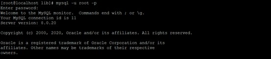 再次执行命令:mysql -u root -p 回车,输入查到的初始密码,登录成功