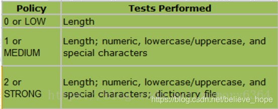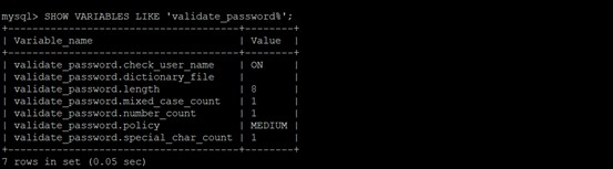 validate_password.policy默认是1,即medium,所以刚开始设置的密码必须符合长度,且必须含有数字,小写或大写字母,特殊字符