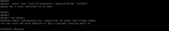 alter user ‘root'@‘localhost' identified by ‘123456';