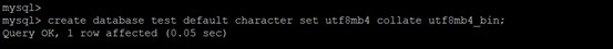 create database test default character set utf8mb4 collate utf8mb4_bin;