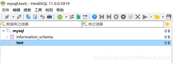客户端使用创建的test_admin用户登录,只有test数据库权限。