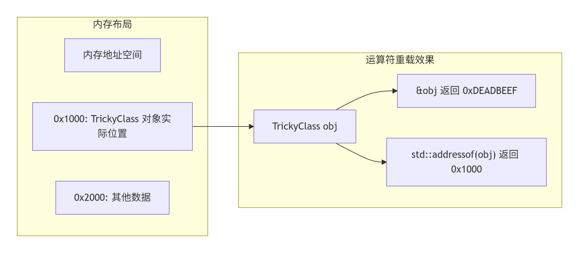 std::cout << "std::addressof(obj): " << std::addressof(obj) << " (真实地址)\n";