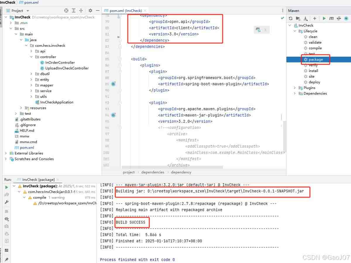 </dependency>2、网上有用maven-assembly-plugin,是用于在打jar包时将你的外部依赖一起package,但是package会报错。