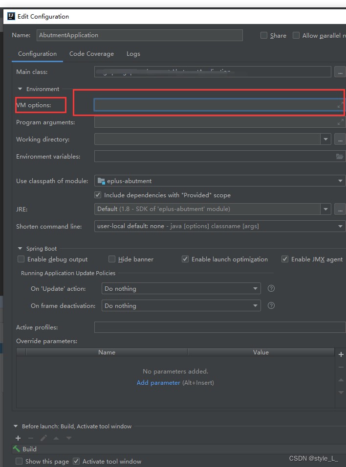 vm options这项需要我们自己填写,我填的是vm options :