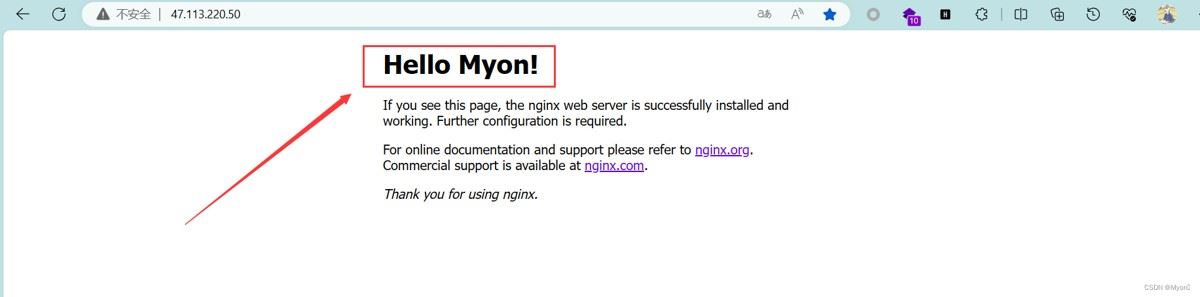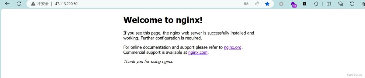 此时访问ip地址(即默认的80端口),则会看到nginx的欢迎界面