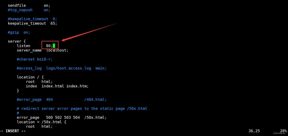 我们只能通过端口转发来实现,需要修改nginx.conf文件,添加具体内容如下: