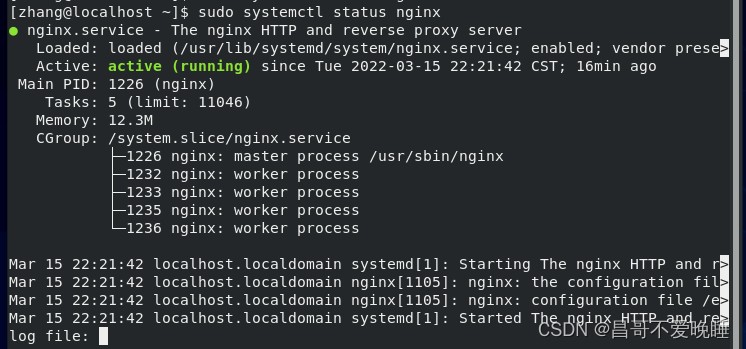 $ sudo systemctl enable nginx $ sudo systemctl start nginx //验证服务是否正在运行,检查其运行状态: $ sudo systemctl status nginx
