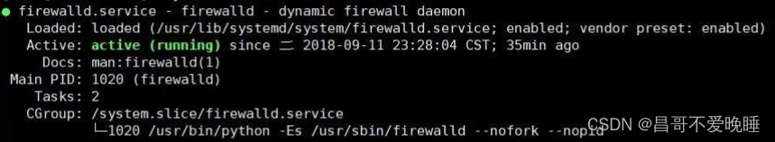 执行后可以看到绿色字样标注的“active(running)”,说明防火墙是开启状态(如下图)。