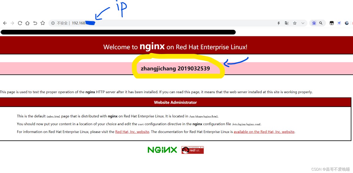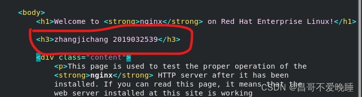 找到index.html文件(nginx默认网页文件)并修改,这里我以我的学号和姓名做一示例。