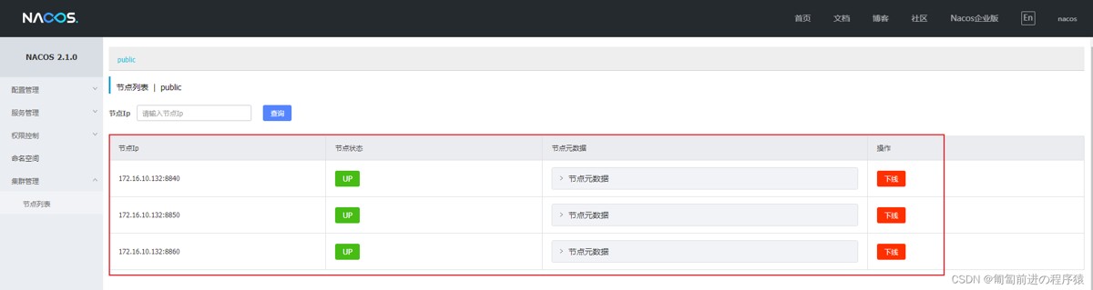 登录 http://172.16.10.132:8840/nacos/index.html ,用户名和密码都是nacos