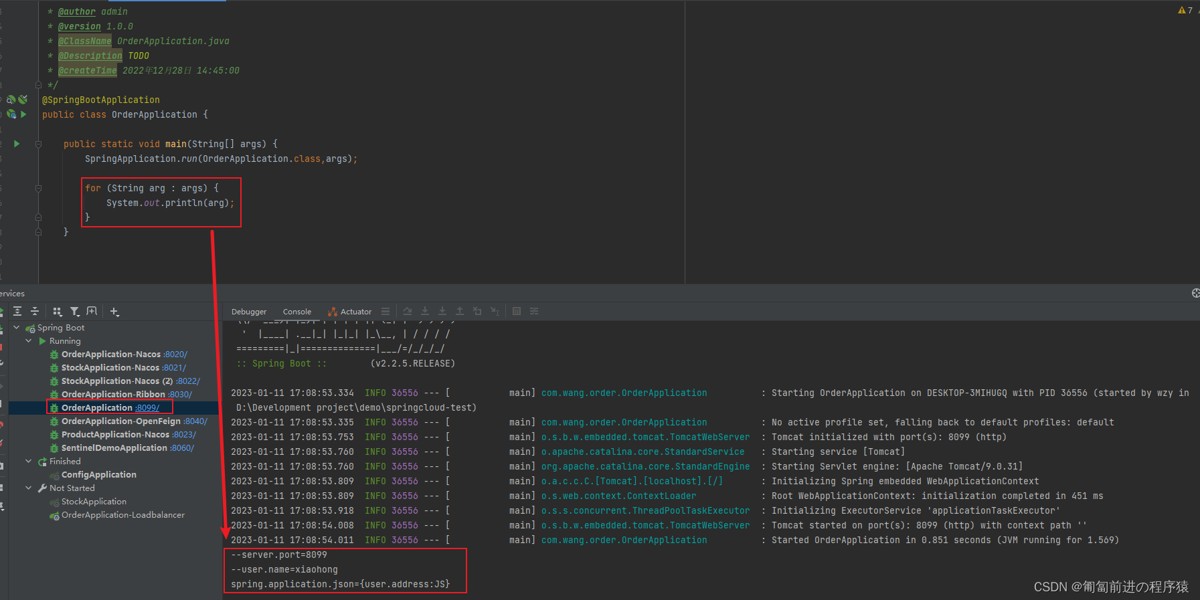 为我们启动类传入main方法的字符串数组args[],它通常以–开头,如–server.port=8099