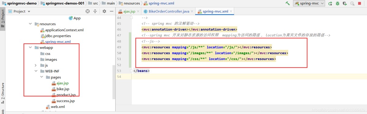 2.1 在spring-mvc 配置文件中,设置开放静态资源的访问