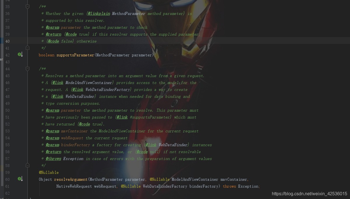 第一个方法的作用:是否与给定方法的参数是由该解析器的支持。(如果返回true,那么就使用该类进行参数转换,如果返回false,那么继续找下一个策略类)