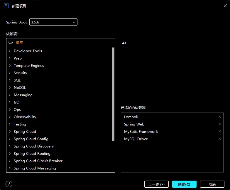 引入依赖:spring web,mybatis framework,mysql driver,lombok
