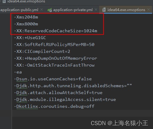 点开按钮以后,修改这三项的值,尽量调大一些,如图我的设置就够用了,重启idea即可。