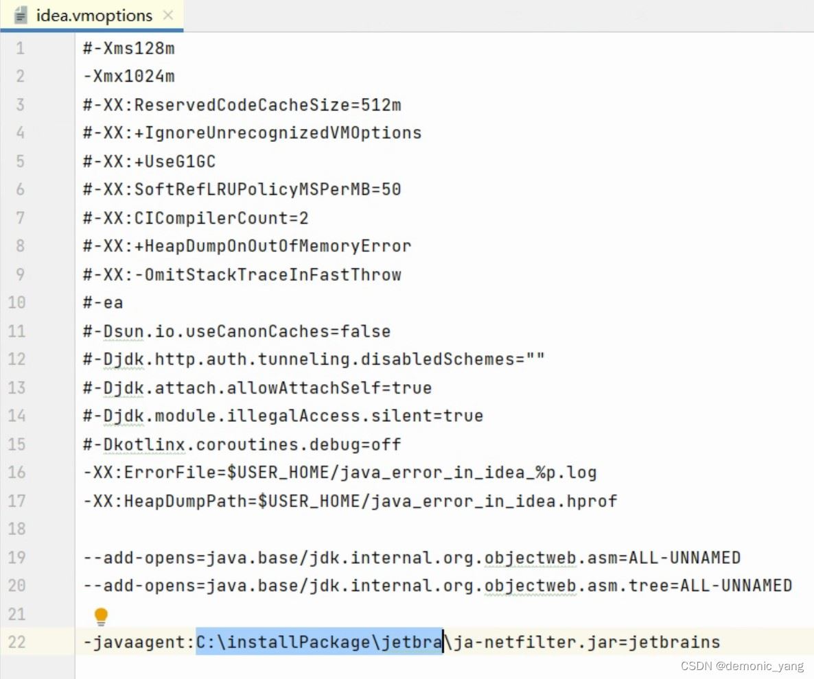 网上都说在c:\users\用户\appdata\roaming\jetbrains\intellijidea2022.1下修改或删除idea64.exe.vmoptions,由于我的idea是用插件破.解的,所以改这里并没有用。