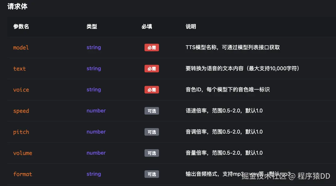 * @param request 模型、音色、文本、速度/音调/音量、输出格式等参数