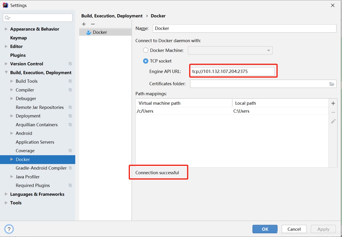 如上图显示connection successful,则表明idea的docker配置成功