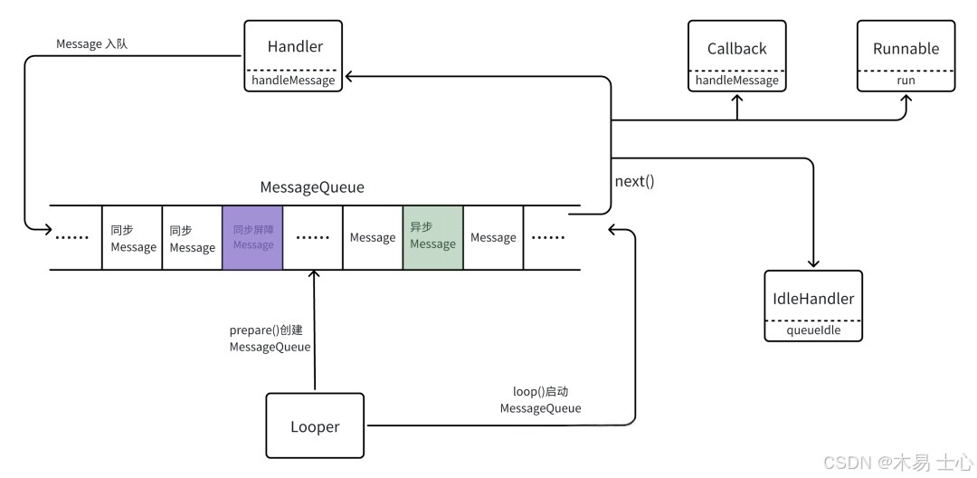 next()方法供looper取出下一条可执行消息 - 支持阻塞等待(无消息时休眠,有消息时唤醒)