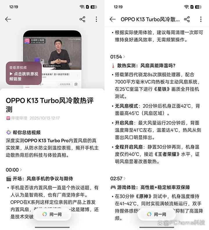 小布记忆功能也得到了进化,可以一次记录多图攻略或长截屏,一键记录取餐码过后,还能直接在流体云中弹出提示,不用再翻小程序查看。要说最好用的,还得是视频记录了。在任意视频中按下快捷键,小布会首先记下当前页面,并对视频的图像、音频、字幕内容进行提取,而后生成结构清晰的ai摘要,重点是带着时间点信息的,想要具体看什么,直接点时间即可自动跳转,连进度条都不用拖。这点对我们的帮助非常大,想要寻找发布会的重点内容,不用看完,小布就能搞定一切。