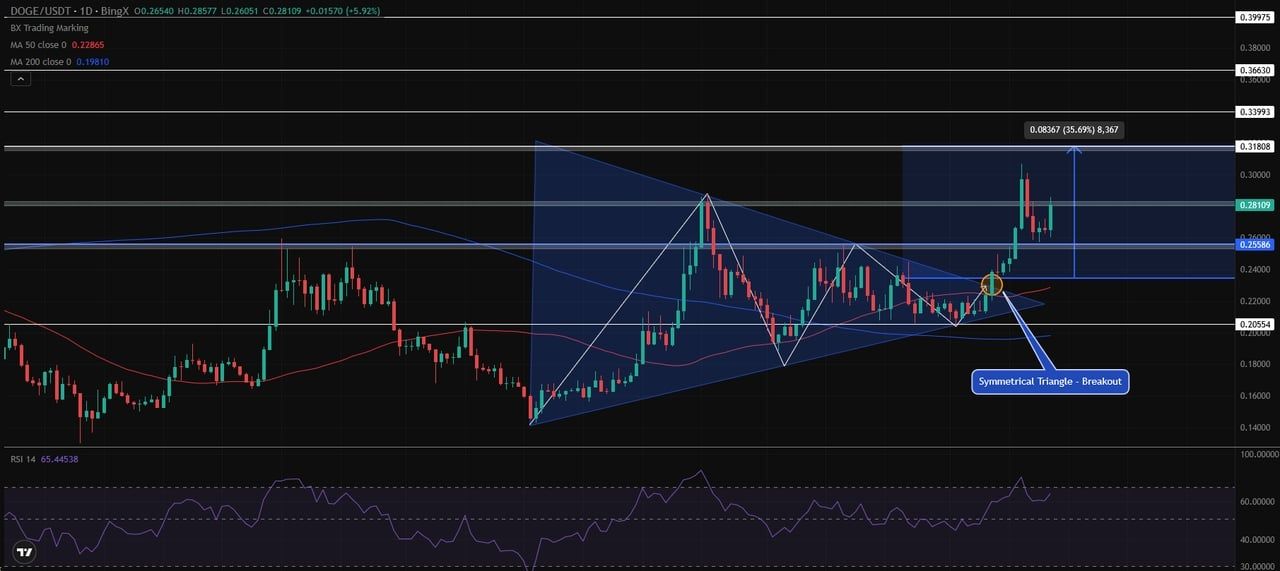 日线图:doge 突破,动能指向0.318–0.339 美元