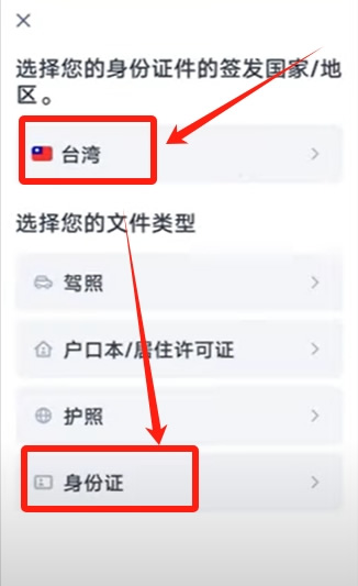 需要我们再确认一下签发国家地区。然后选择我们需要认证的证件类型是“身份证”。