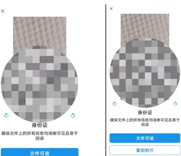 接下来扫描一下我们身份证件的正反面。点击【文件可读】