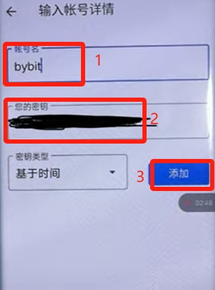 把我们刚刚复制的密钥粘贴进去。账号名我们就可以写bybit,最后点击【添加】。