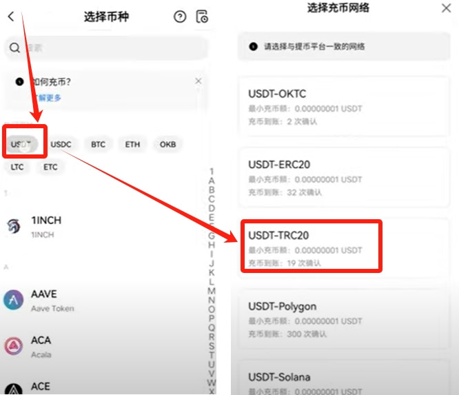 我们返回欧易。还是在资产的页面,我们选择【充币】。选择【充入数字货币】。
