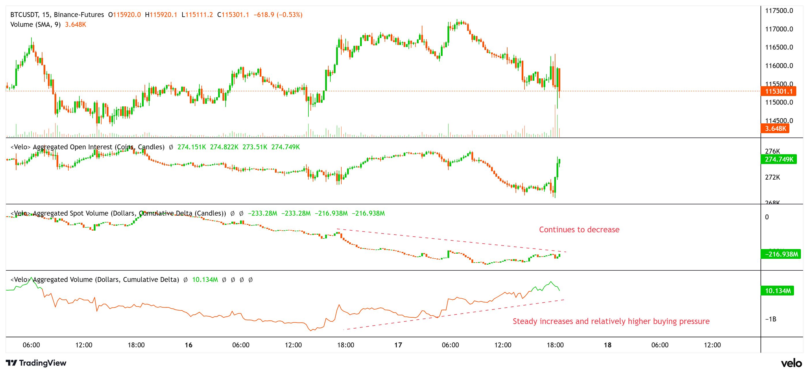 除非交易量显着放大,否则比特币短期内大概率将在114,000美元至118,000美元区间震荡整理,因市场参与者可能会因美联储对失业风险的担忧而保持谨慎。