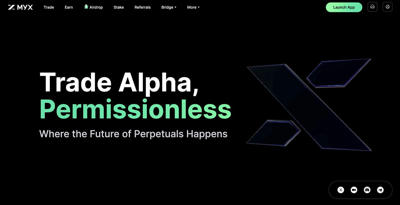 myx finance 透过其撮合池机制(mpm)在内部撮合多头和空头仓位,以消除滑价,实现高达125 倍的资本效率,同时保持零滑价。该平台提供以usdc 为保证金的永续期货,最高可达50 倍杠杆,并具有跨链交易功能,让用户无需桥接资产即可在任何受支持的区块链上进行交易。 myx 注重用户体验,提供无手续费的交易和简化的入门流程,使其对传统金融用户和defi 原生用户都易于使用。