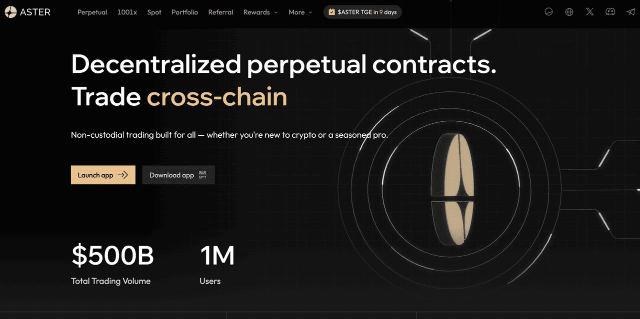 aster dex (前身为astherus) 来自于领先的bnb 链收益协议astherus 与永续dex apx finance 的合并,创造了一个结合永续交易与收益策略的统一平台。该协议目前正为定于2025 年9 月17 日举行的aster 代币生成活动(tge) 做准备,并作为coinmarketcap 的cmc launch 平台的首个专案推出,其总锁仓价值(tvl) 超过3.5 亿美元,并占据整个永续dex 市场近20% 的市占率。
