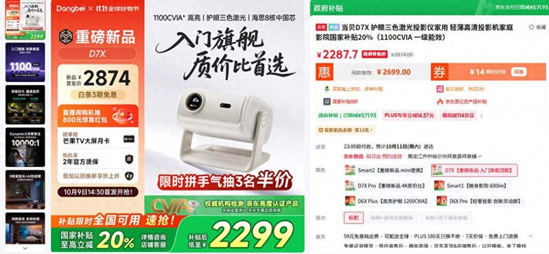 日前,当贝推出了新款投影仪d7x系列,主打高质价比,首发到手价2874元起,叠加20%国补后到手价是2299元。