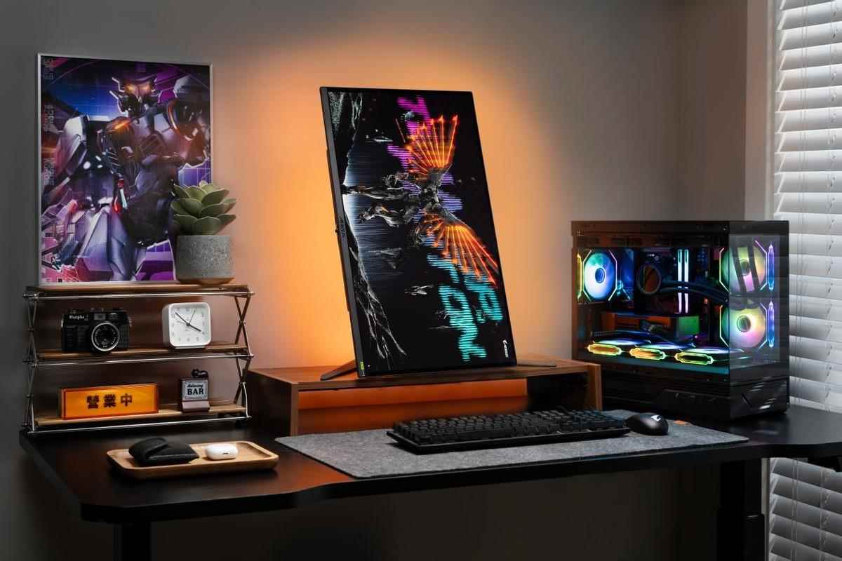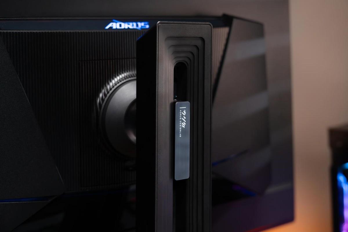 aorus fo27q5p外观设计较为简约,除了支架为棱角分明的多面体造型、底座有硬朗的线条之外,整体并无太多装饰元素,搭配机身全黑配色,给人以较为低调的视觉体验。由于oled面板不需要单独的背光模组,屏幕厚度控制得相当不错。还采用主流的三边窄边框设计,降低了边框对观看的影响,提升了屏占比,观看时的沉浸感更加出色。在显示器背面还有logo灯和灯带,显著提升了产品的炫酷值。