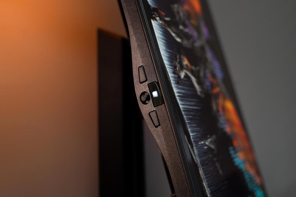 屏幕正下方设置了2个按键和1个osd操控杆,形状、手感区别很大,不会造成误触。osd操控杆支持五维操作,向左拨为音量调节、向右拨为输入接口选择、向下拨为影像模式调节、向上拨为黑平衡2.0调节。按下osd操控杆则进入设置菜单界面,包括了oled care、显示器设置、战术功能以及关机等功能。