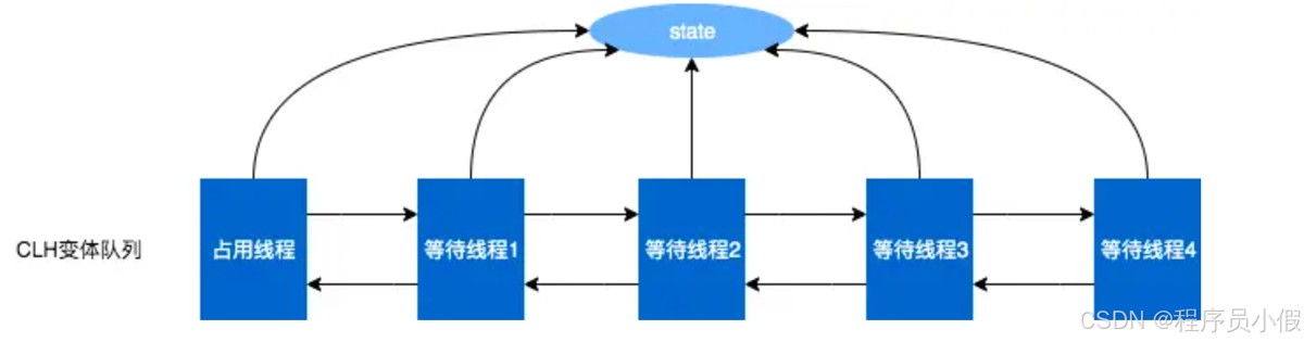 - 头节点(head):指向获取到资源的线程所在的节点。头节点不持有线程,是一个“虚节点”。