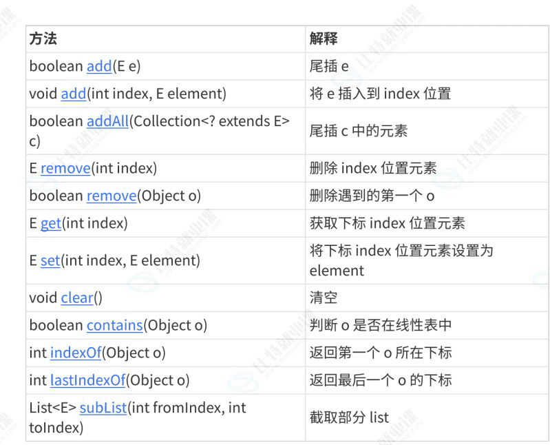 arraylist虽然提供的方法比较多,但是常用方法如下所示,需要用到其他方法时,同学们自行查看arraylist的帮助文档。