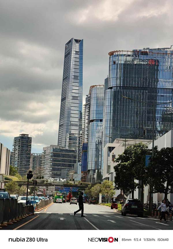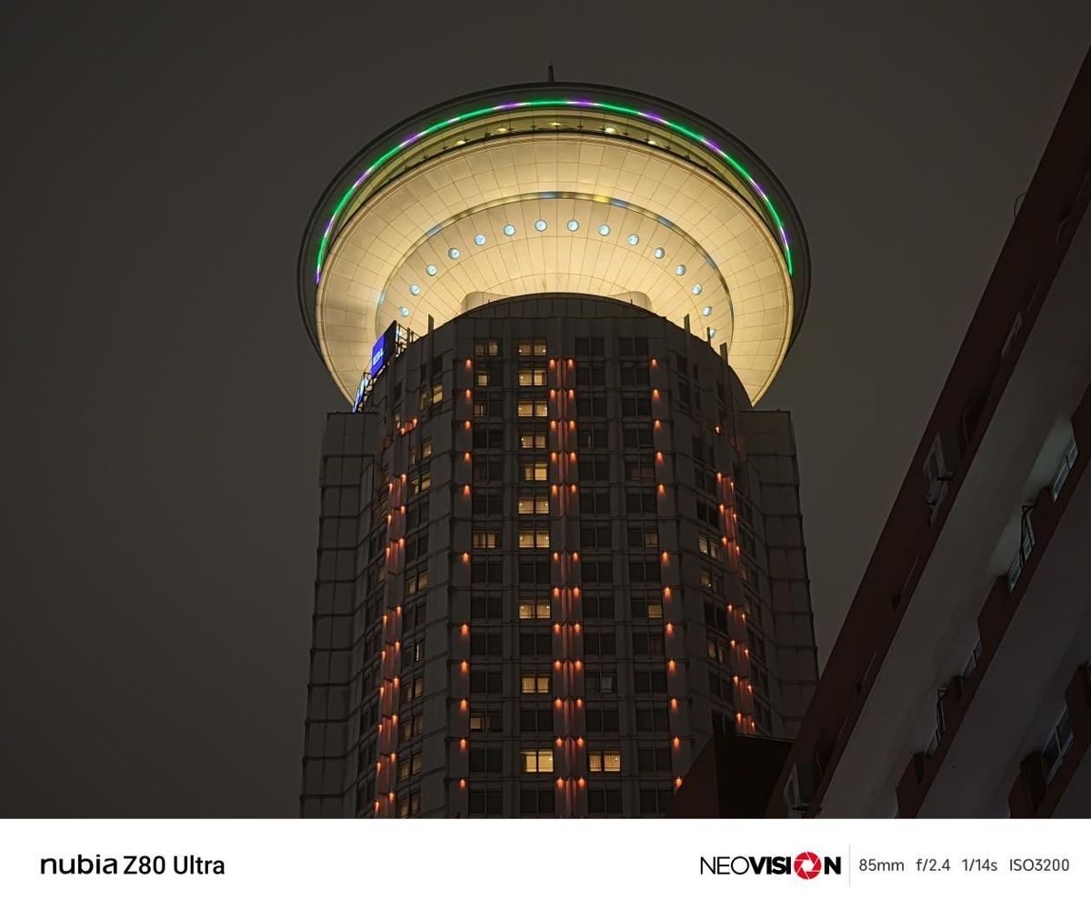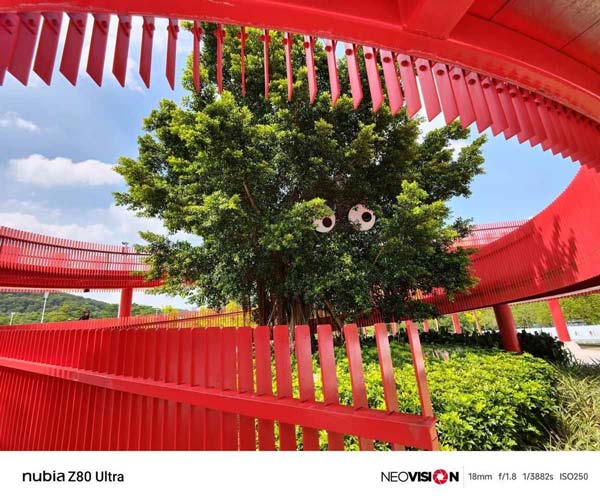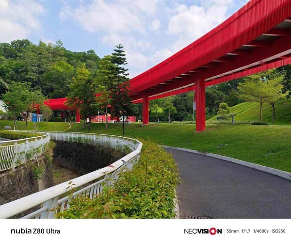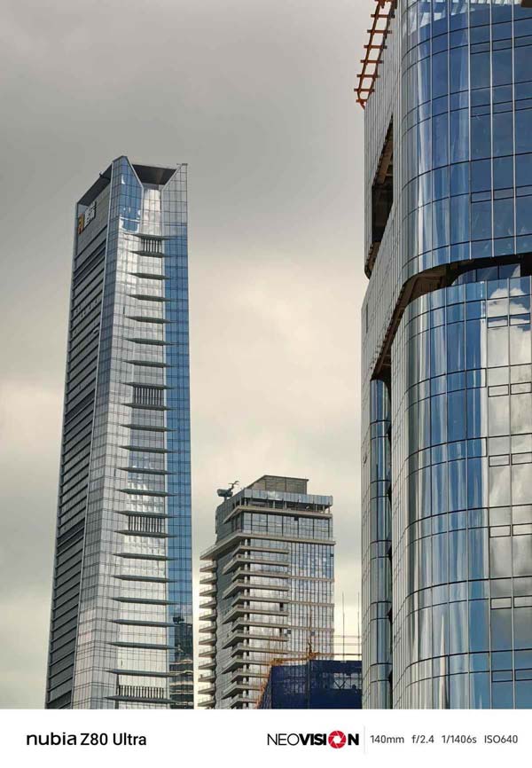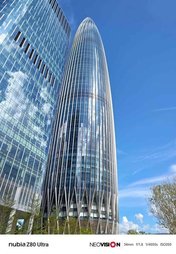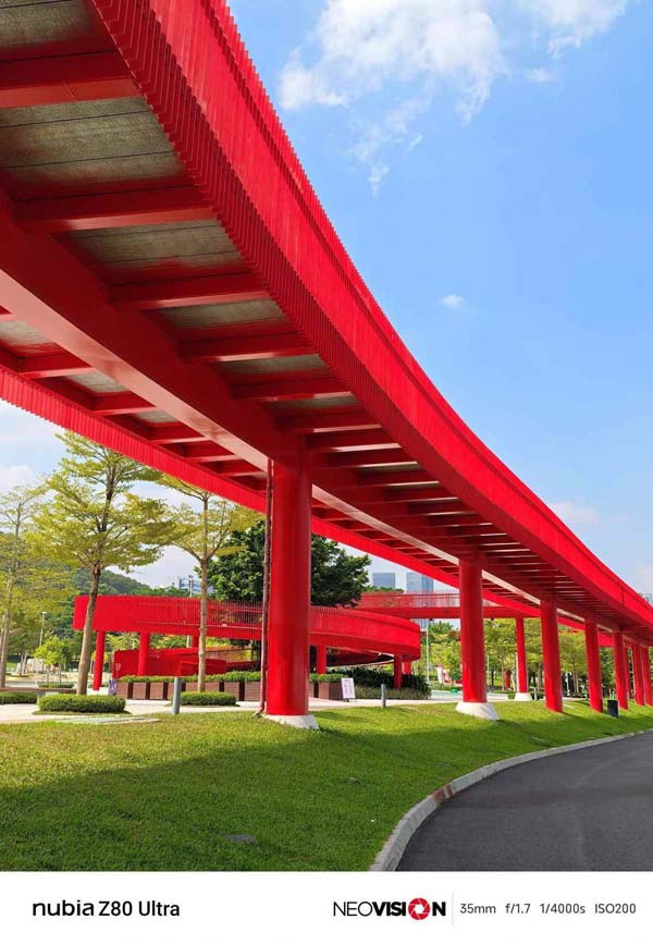 除了35mm主摄外,努比亚z80 ultra还配备了18mm超广角和64mp潜望式长焦镜头,组成了全焦段三主摄系统。这枚5000万像素超广角镜头拥有100°超大视角,和上代13mm超广角相比,它的畸变控制显然要好很多,哪怕是近距离拍摄建筑、线条,边缘也不会有明显的拉伸感。同时它的传感器尺寸也来到了1/1.55英寸,这个成像素质放在超广角镜头中还真不多见。