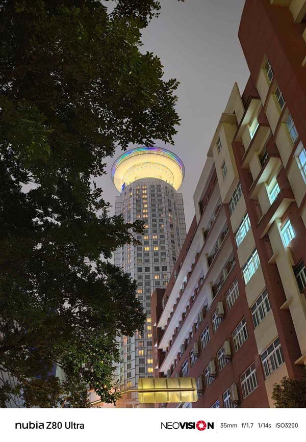 人眼单眼的水平视角约为 50-60 度,而 35mm 焦段的视角约为 63 度,几乎完全匹配人眼的自然观察范围,所以这一焦段也被称为“人文之眼”。到了努比亚z80 ultra上,这枚主摄已经进化为第五代原生35mm定制光学镜头,传感器升级为光影大师990,拥有1/1.3英寸大底和1.2μm大像素。