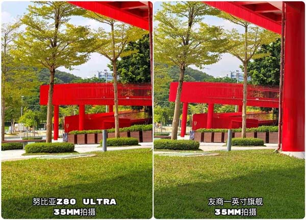 得益于大底大光圈,这次的人文叙事主摄拥有着更加清晰锐利的画面,同时相比传统一英寸主摄通过变焦实现的35mm效果,原生35mm镜头在画质上有着天然优势。和友商一英寸ultra相比,在相同的35mm焦段下,放大再看画面细节,努比亚z80 ultra甚至要更胜一筹。