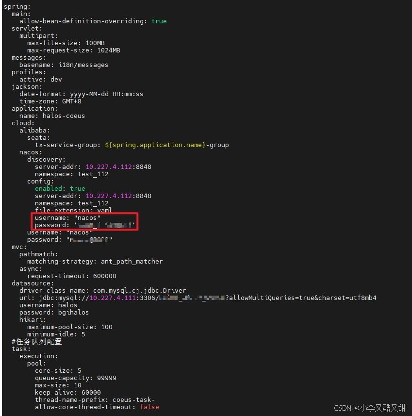 于是,把服务器上和nacos上的配置文件配置的nacos账号密码修改正确