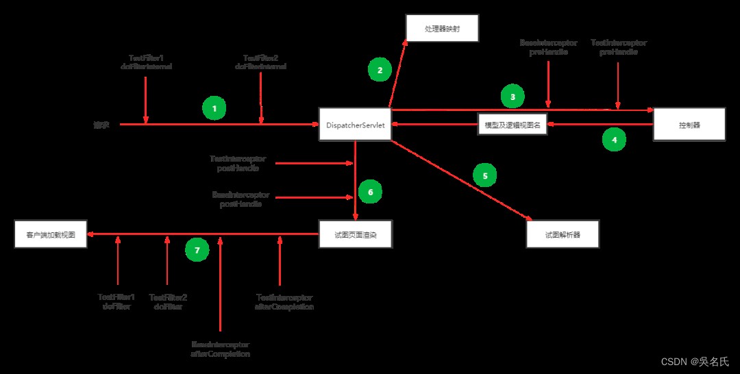 springmvc 中的 interceptor 是链式调用。在一个应用中或者说是在一个请求中可以同时存在多个 interceptor,每个 interceptor 的调用会依据它的声明顺序依次执行,而且最先执行的都是 interceptor 中的 prehandle 方法。