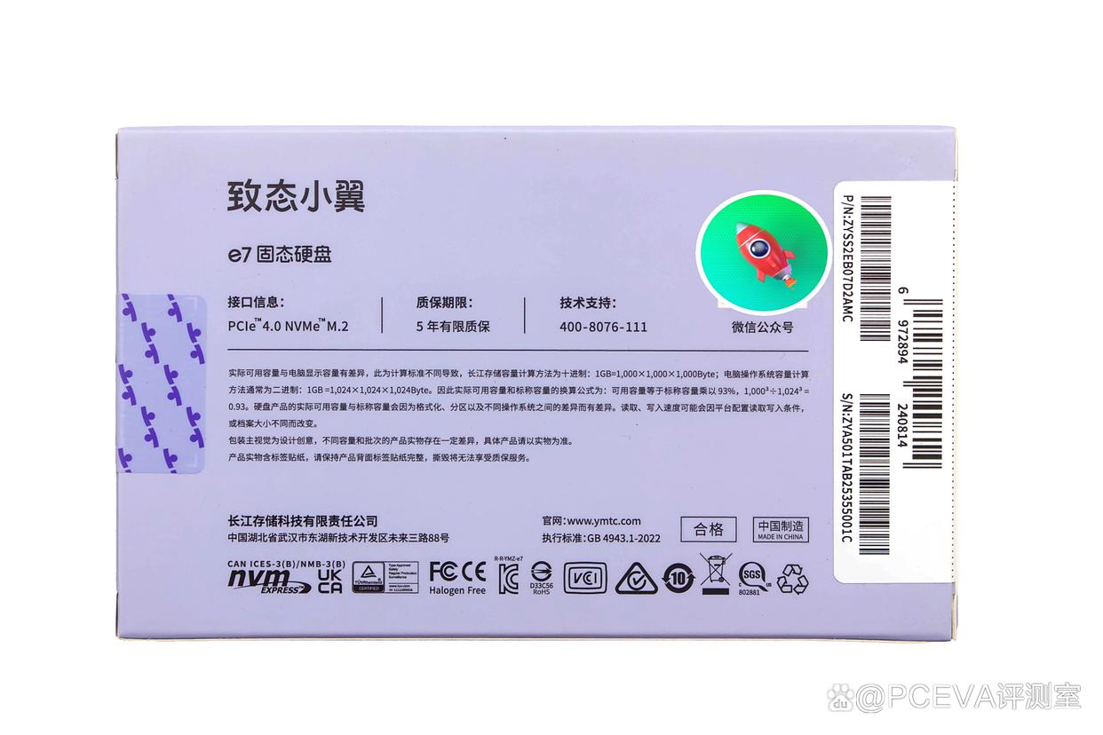 致态小翼首批推出致态小翼e7(pcie 4.0 nvme)和致态小翼s001(sata 6gps)两款型号,本次我们评测的是致态小翼e7 1tb版本。