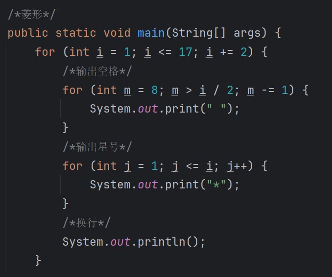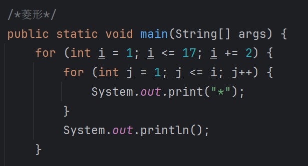 到此这篇关于运用java以及循环打印菱形的文章就介绍到这了,更多相关运用java循环打印菱形内容请搜索代码网以前的文章或继续浏览下面的相关文章希望大家以后多多支持代码网!