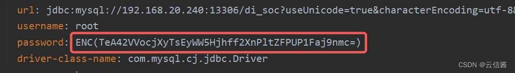 配置mysql的jdbc,使用“enc(密文)”配置密码,其他配置有密码都类似修改