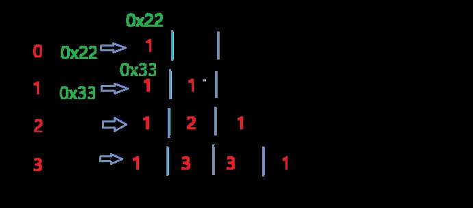 使用 [i][j] = [i-1][j-1] + [i-1][j-1] 的思路。