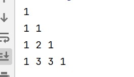 输出: [ [1],[1,1],[1,2,1],[1,3,3,1],[1,4,6,4,1] ]